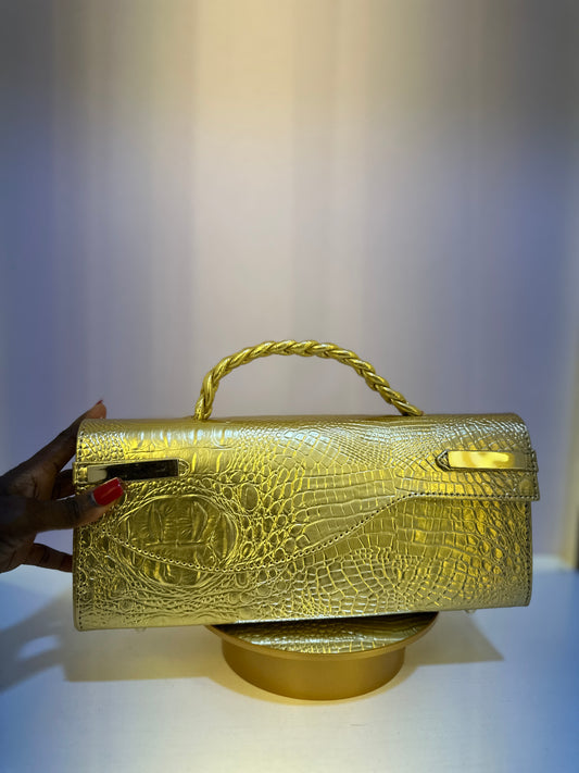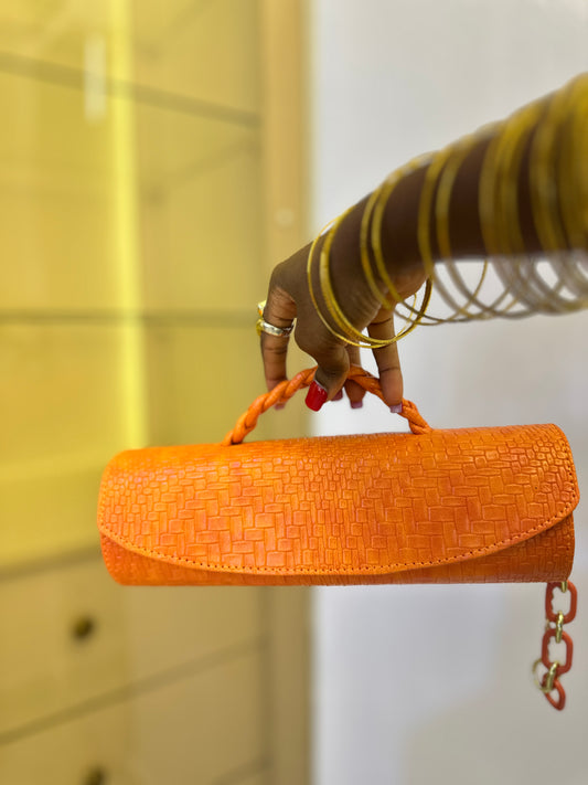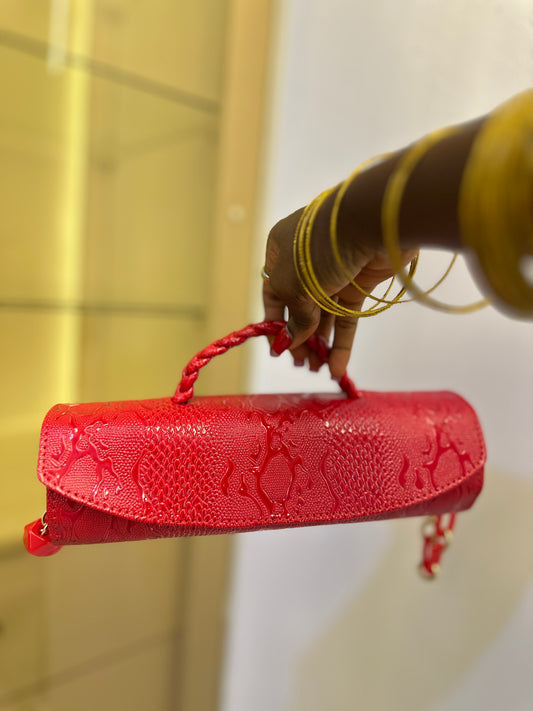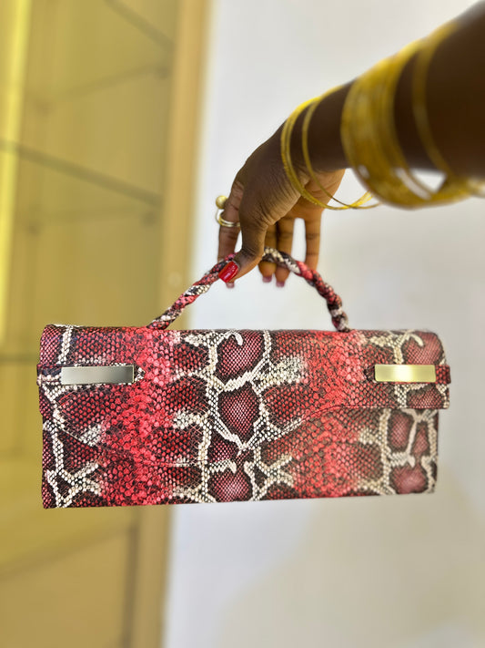 Red Snake Skin Curved Flap Bag - Ganiyat