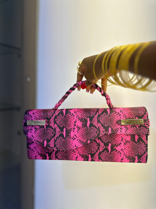 Pink Snake Skin Curved Flap Bag - Victoria
